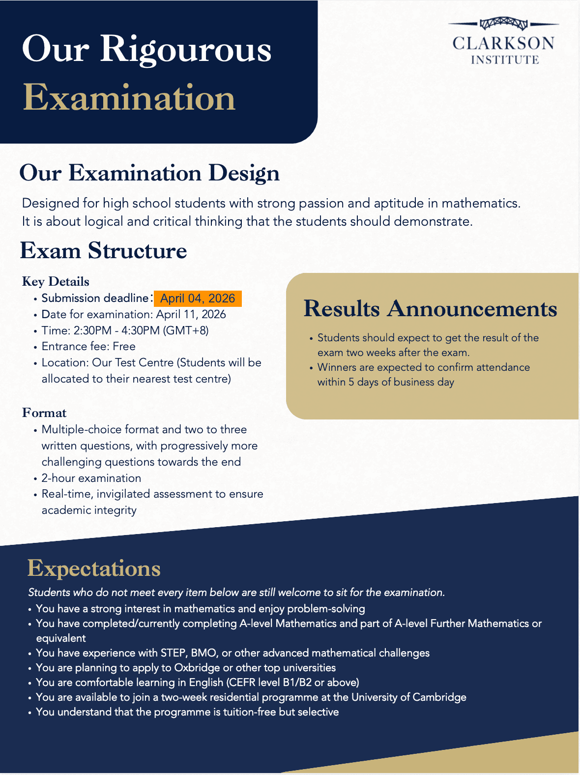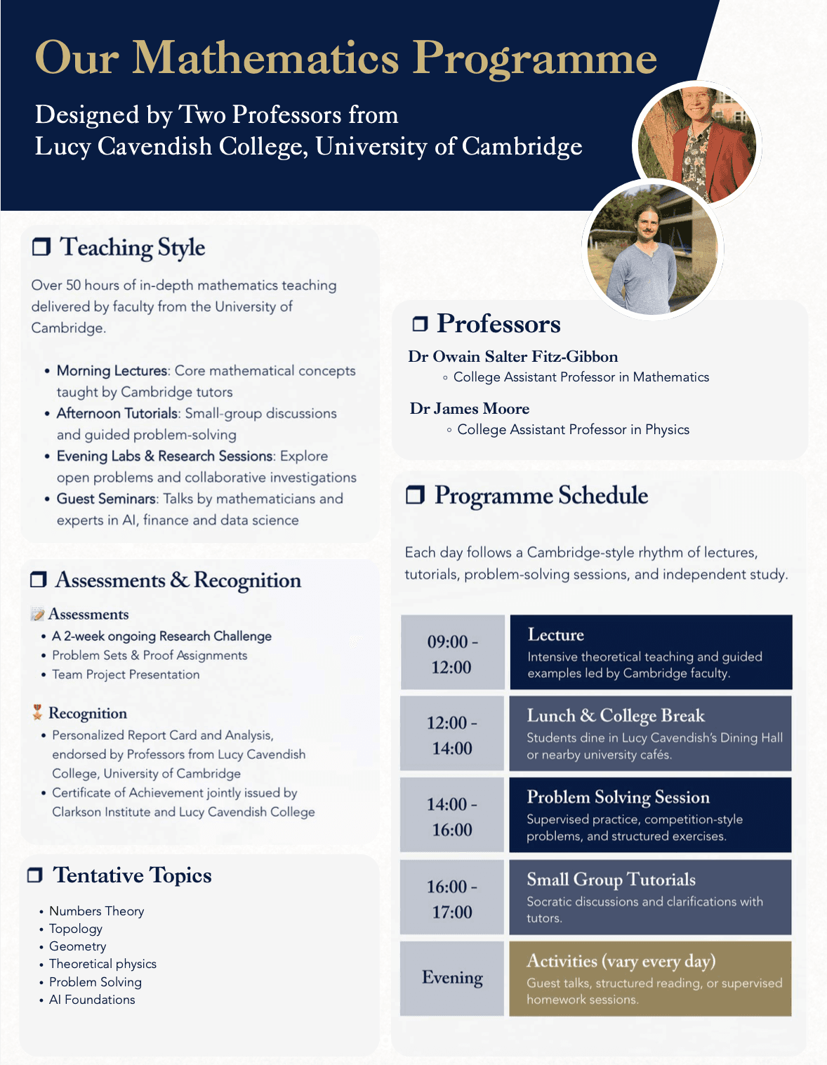 ☐ You are available to join a two-week residential programme at the University of Cambridge